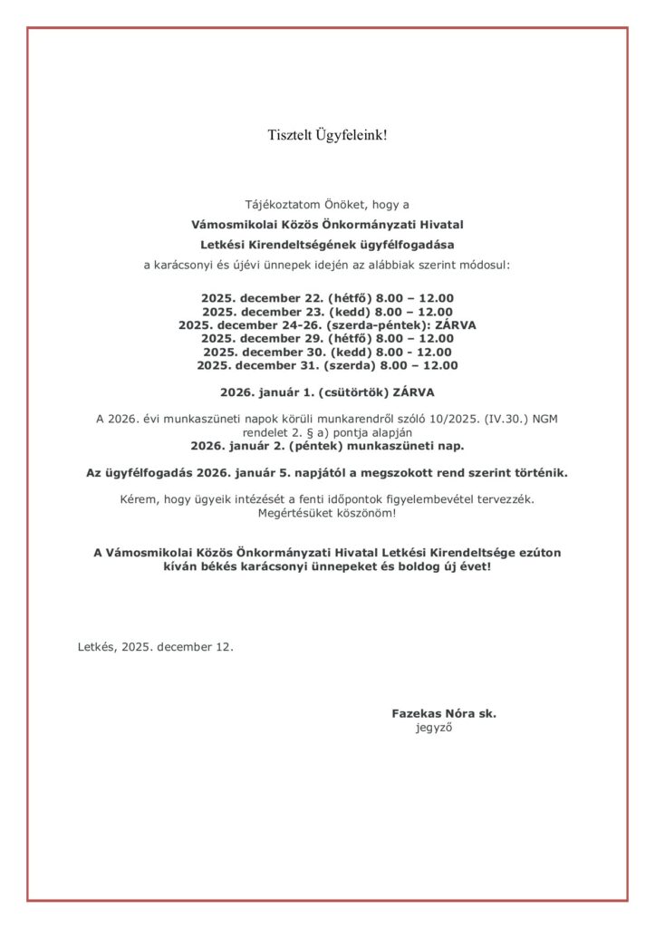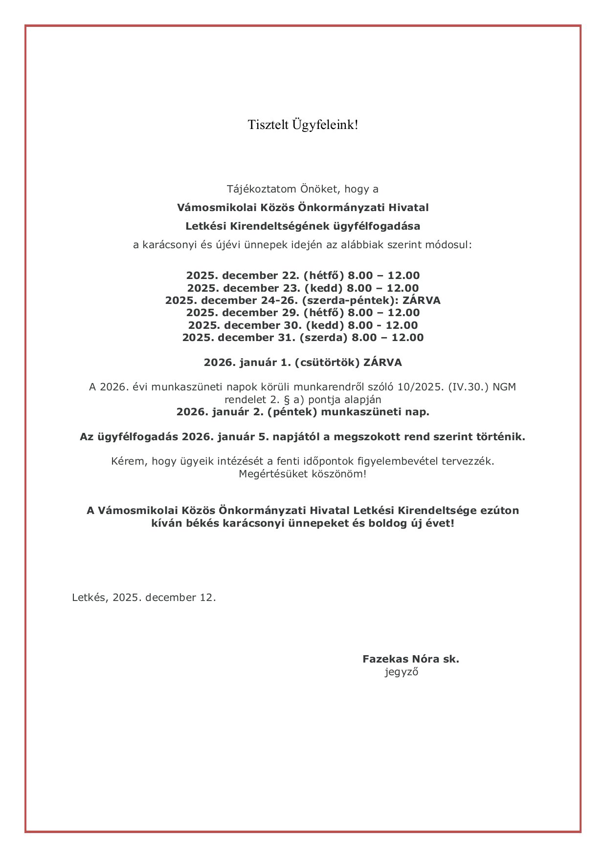 Ezúton értesítem, hogy Ipolytölgyes Községi Önkormányzat Képviselő-testülete 2025. december 18-án, csütörtökön 11:00 órakor rendes ülést tart, melyre tisztelettel meghívom: